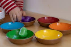 Playdough offers so many opportunities for play, concentration, creativity, and sensory play. A fun way to make playdough more exciting is by offering some playdough kit tools. I also swear by making playdough from home! You can do it in 5 minutes (get the recipe here!) If you want to see me make playdough, check out this video tutorial! I would much prefer to offer sensory exploration through playdough than with sensory bins.